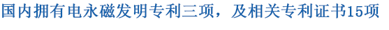 千豪磁電在電磁研究領(lǐng)域保持創(chuàng)新精神,擁有過(guò)三項(xiàng)發(fā)明專(zhuān)利(蜂巢磁力模板,永磁吸吊器,電磁感應(yīng)加熱裝置),電永磁相關(guān)專(zhuān)利證書(shū)多達(dá)15項(xiàng)。