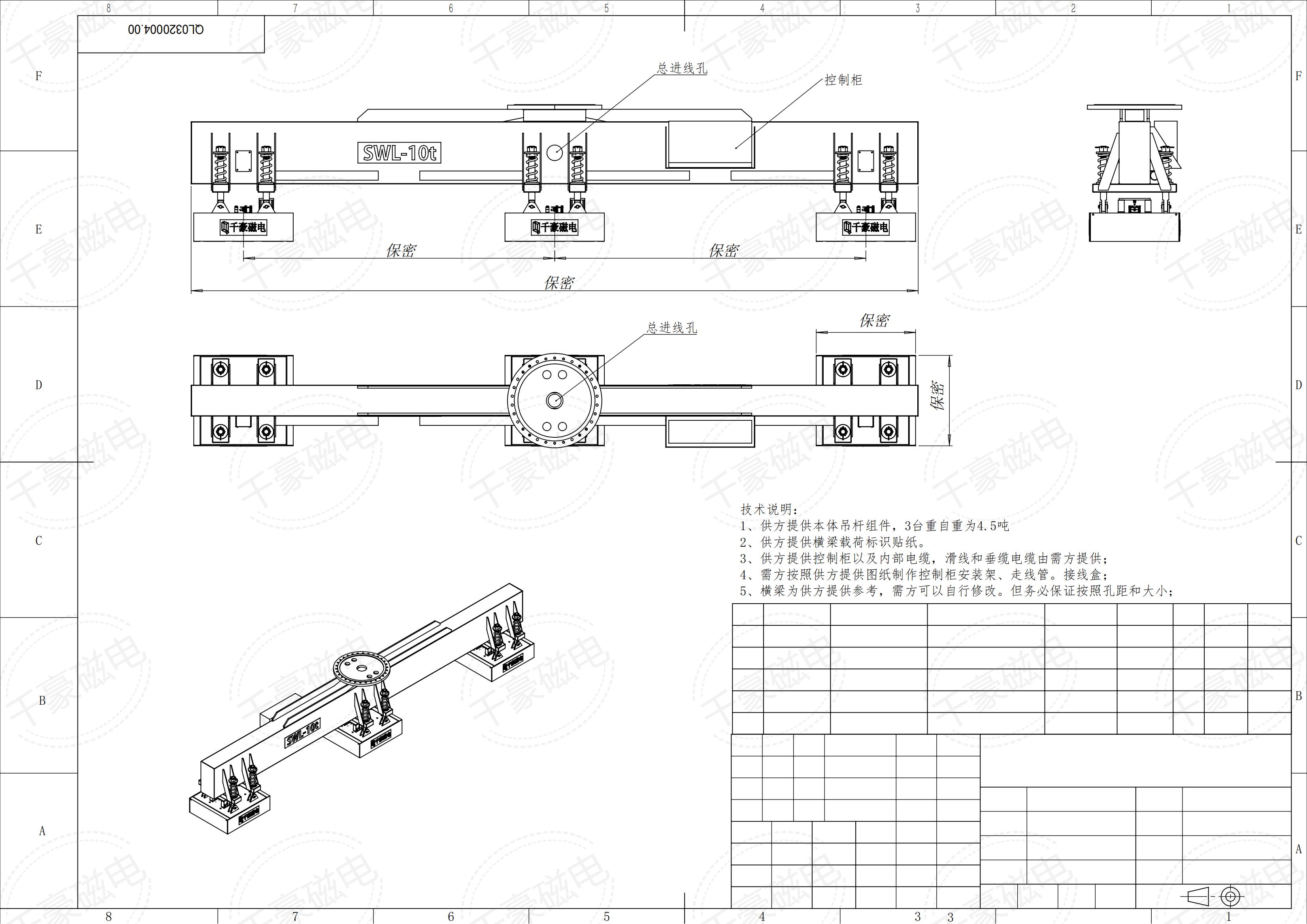 控制系統(tǒng):配套智能行車使用,電永磁由PLC控制,控制器在梁上,控制器上有控制按鈕